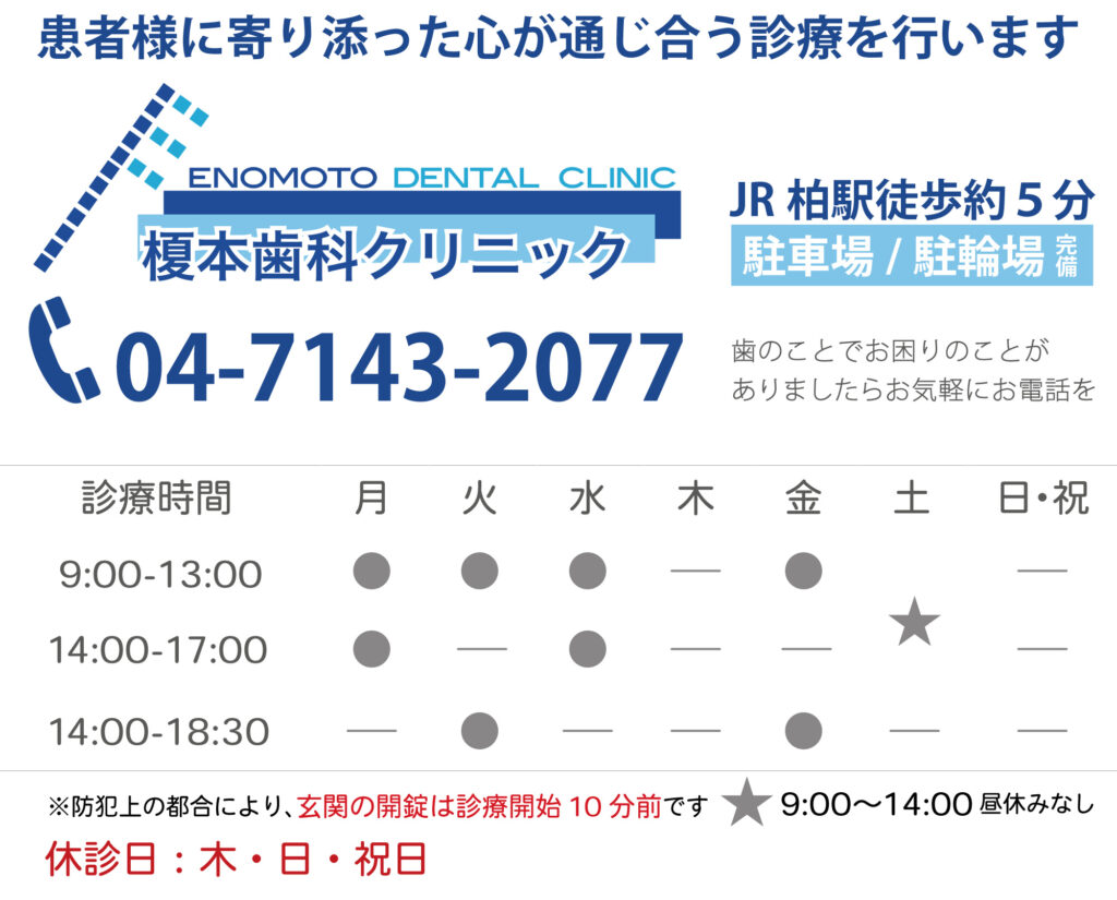 平成31年4月3日をもって柏市末広町 榎本歯科医院と統合し、「医療法人 榎本歯科クリニック」として、法人化いたしました。